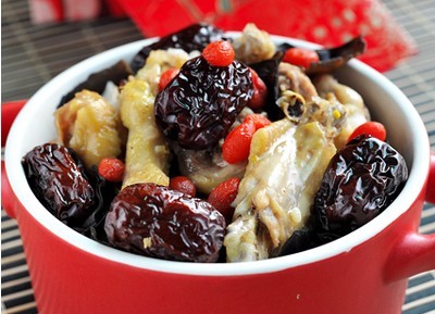 主料:畲乡童子鸡一只、木耳(干) 适量、枸杞子适量、黑枣(有核) 、(酒)适量