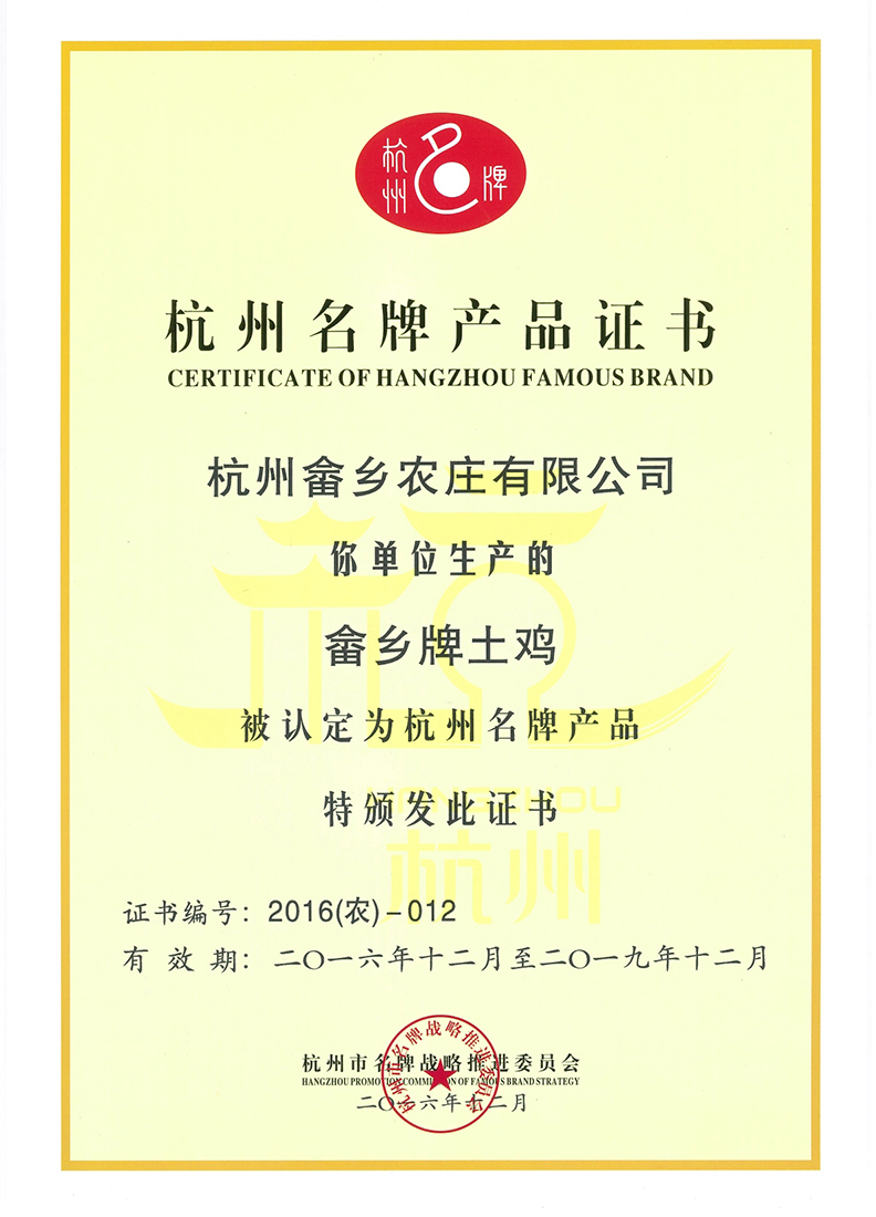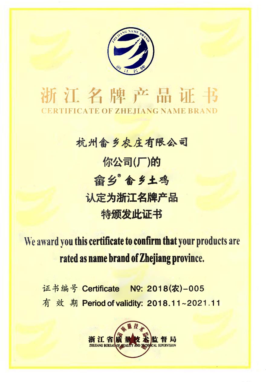 畲乡保证:每羽畲乡上树土鸡的血统基因、生活环境、生长过程、生存周期、食物采觅、质量检验、中转运输、自产自销各环节全部符合并已超越了杭州市政府2006年10月颁布的《关于土鸡的认定标准》等地方法规,同时完全符合国家农业部无公害认证标准:无色素、无激素,无环境污染、无药物残留、无皮革粉、无骨粉、无血粉、无鱼粉、无石粉等添加,保证原汁原味原生态!