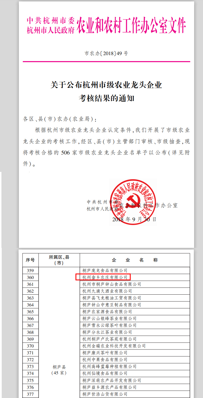 杭州市农业龙头企业