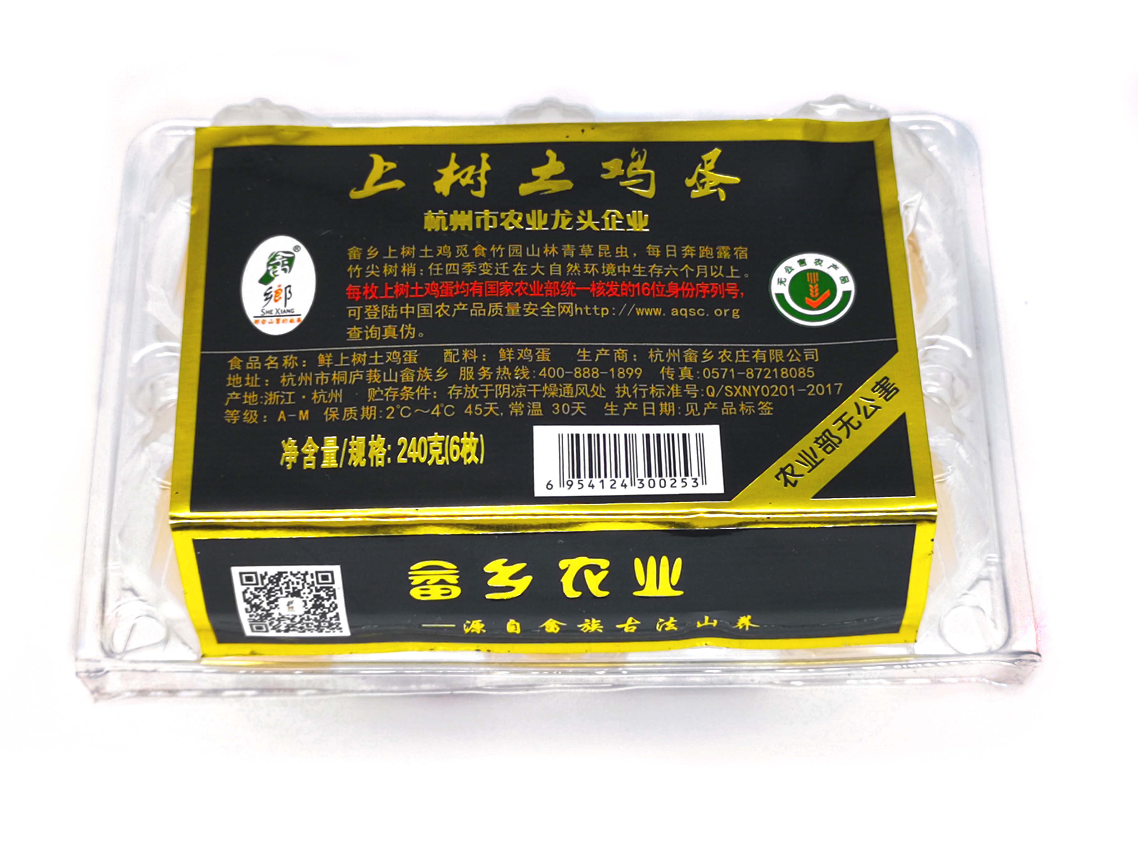 畲乡土鸡开产后生产的头一窝蛋为“畲乡头生土鸡蛋”;畲乡小母鸡开产后当月内生产的鸡蛋称为“畲乡上树土鸡蛋”;畲乡土鸡开产一个月之后生产的鸡蛋统称为“畲乡土鸡蛋”。畲乡上树土鸡觅食竹园山林青草昆虫,每日奔跑露宿竹尖树梢;任四季变迁在大自然环境中生存六个月以上;畲乡上树土鸡所产的畲乡上树土鸡蛋营养丰富。